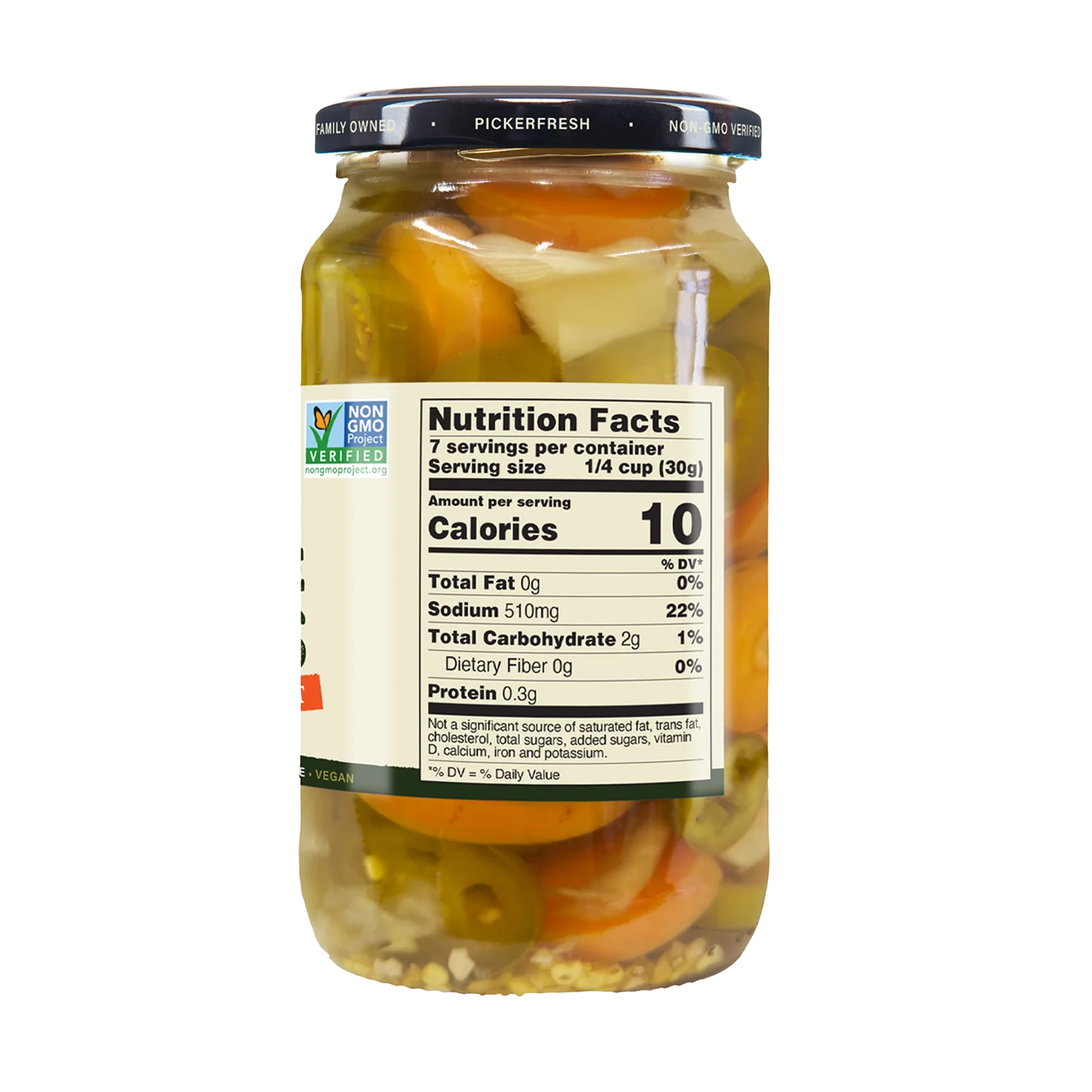 INGREDIENTS: Water, jalapeno, carrot, onion, distilled vinegar, salt, garlic, bay leaves.